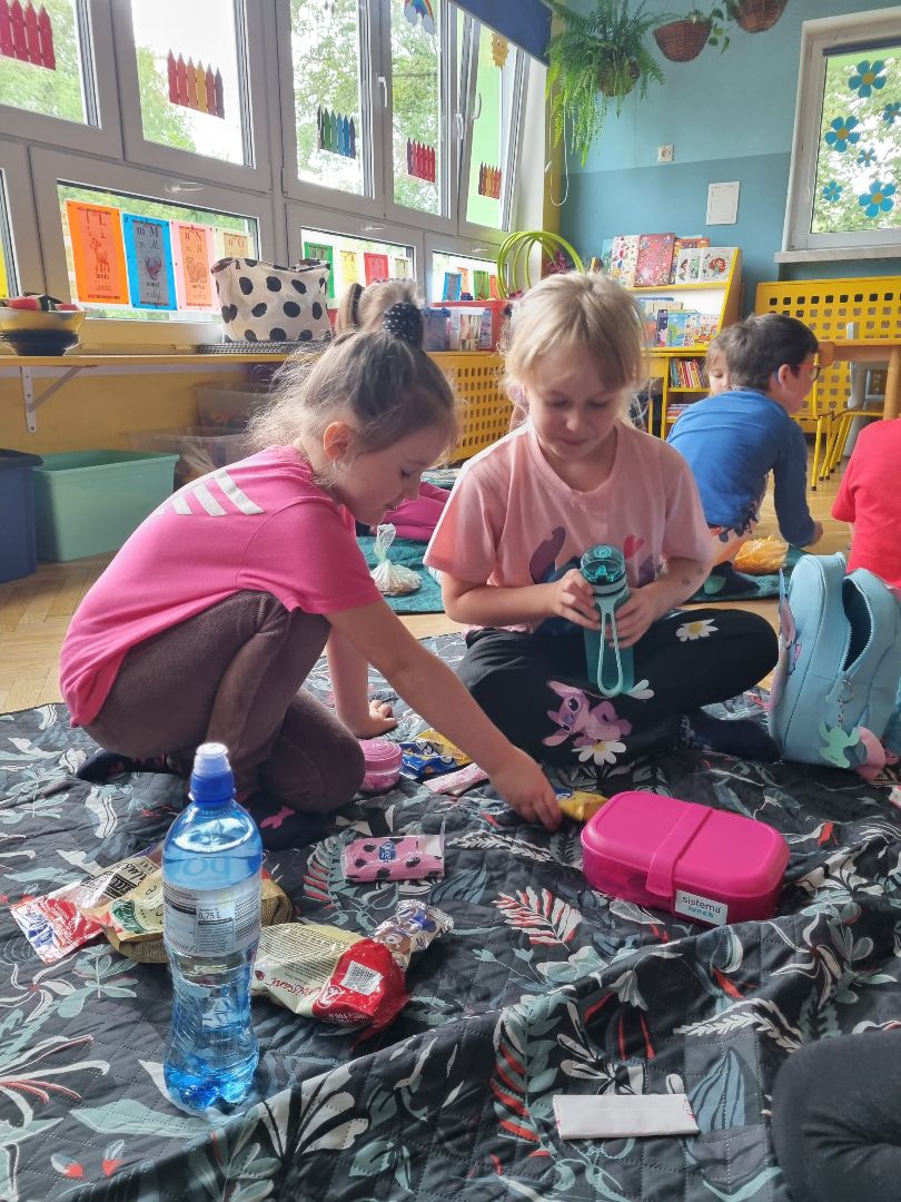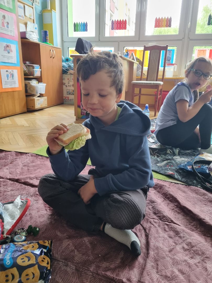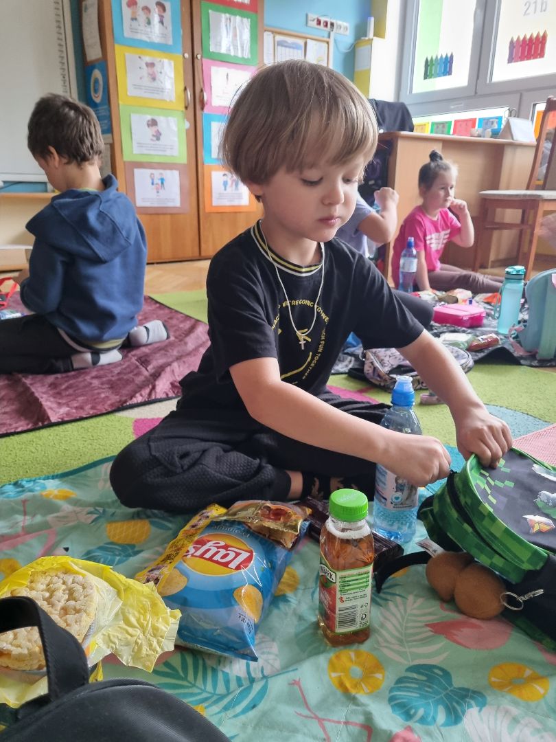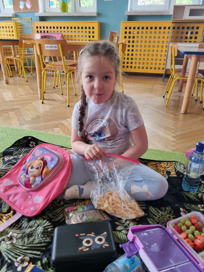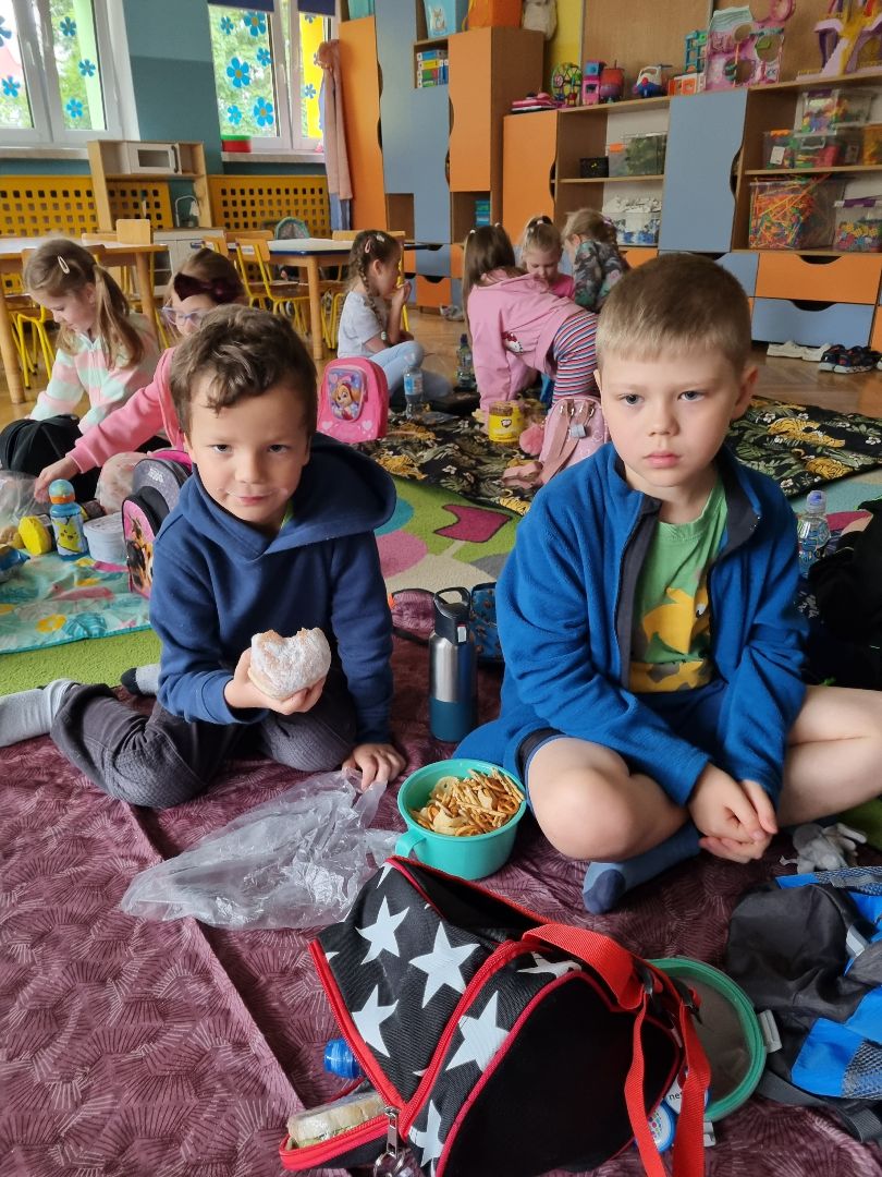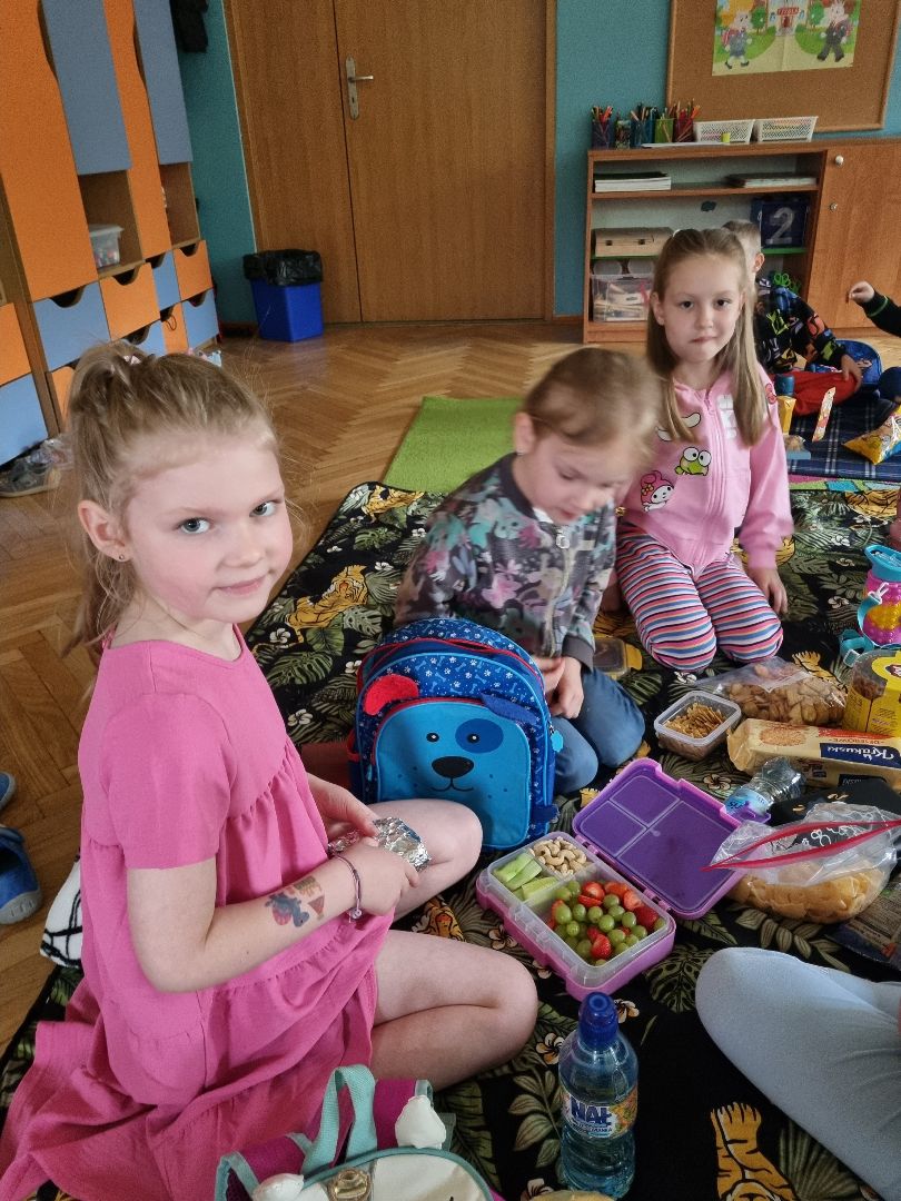 Dzisiaj Pszczółki przyszły do przedszkola z kocykami i plecakami pełnymi rozmaitych przekąsek, w pełni gotowe na pikinik pod chmurką. Niestety, tegoroczny czerwiec nie rozpieszcza nas piękną pogodą i musieliśmy nasz piknik.... zorganizować w sali! Dzieci rozłożyły swoje koce na dywanie i zajadały się smakołykami przygotowanymi przez Rodziców. "Pszczółki" z ochotą dzieliły się swoimi przekąsakmi, częstując się wzajemnie. Piknik, pomimo, iż w budynku, był naprawdę bardzo udany! Dziękujemy Rodzicom za przygotowanie plecaczków i kocyków!