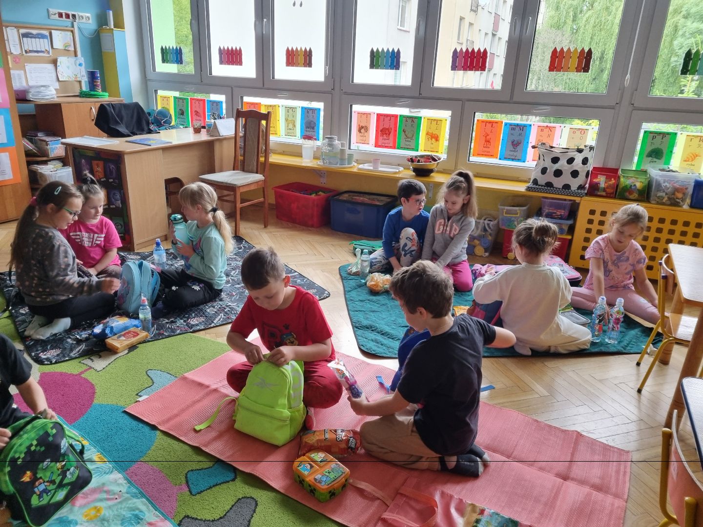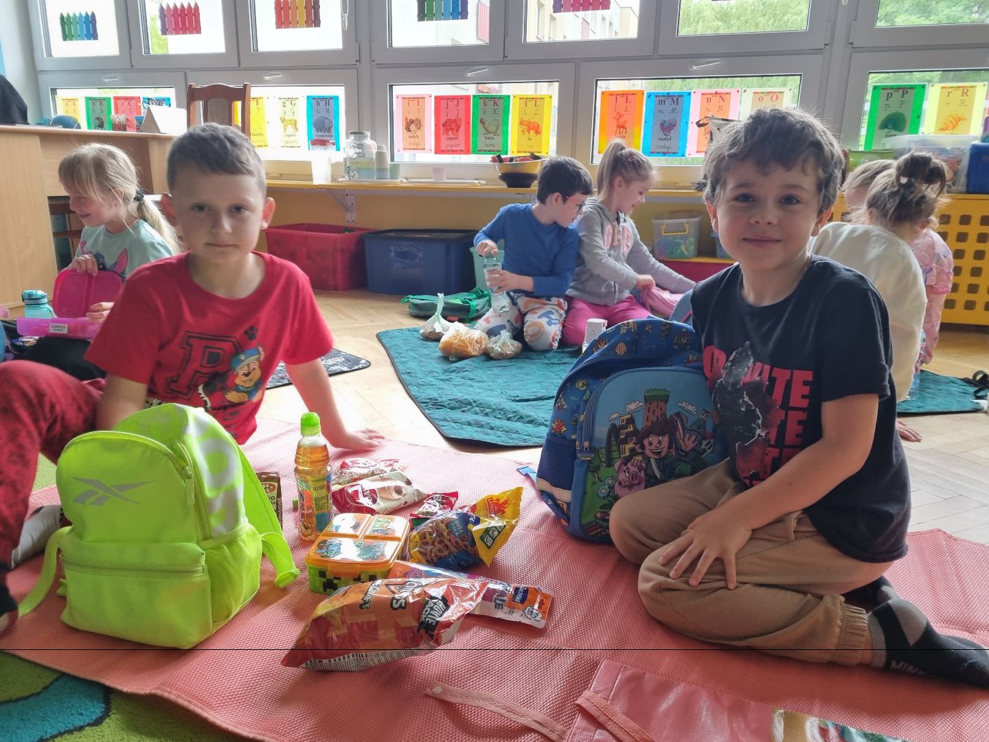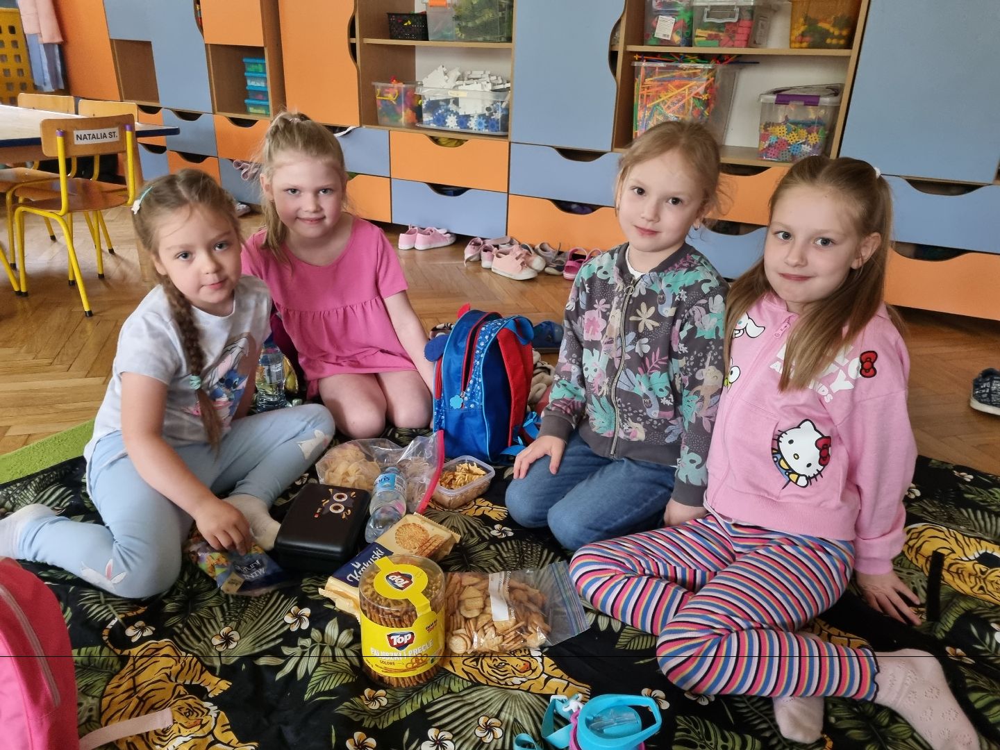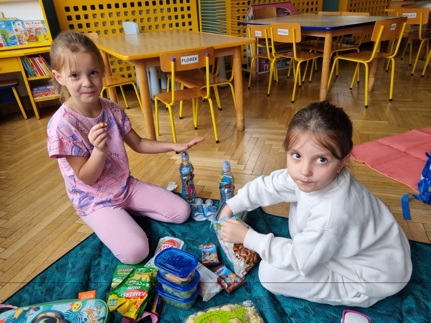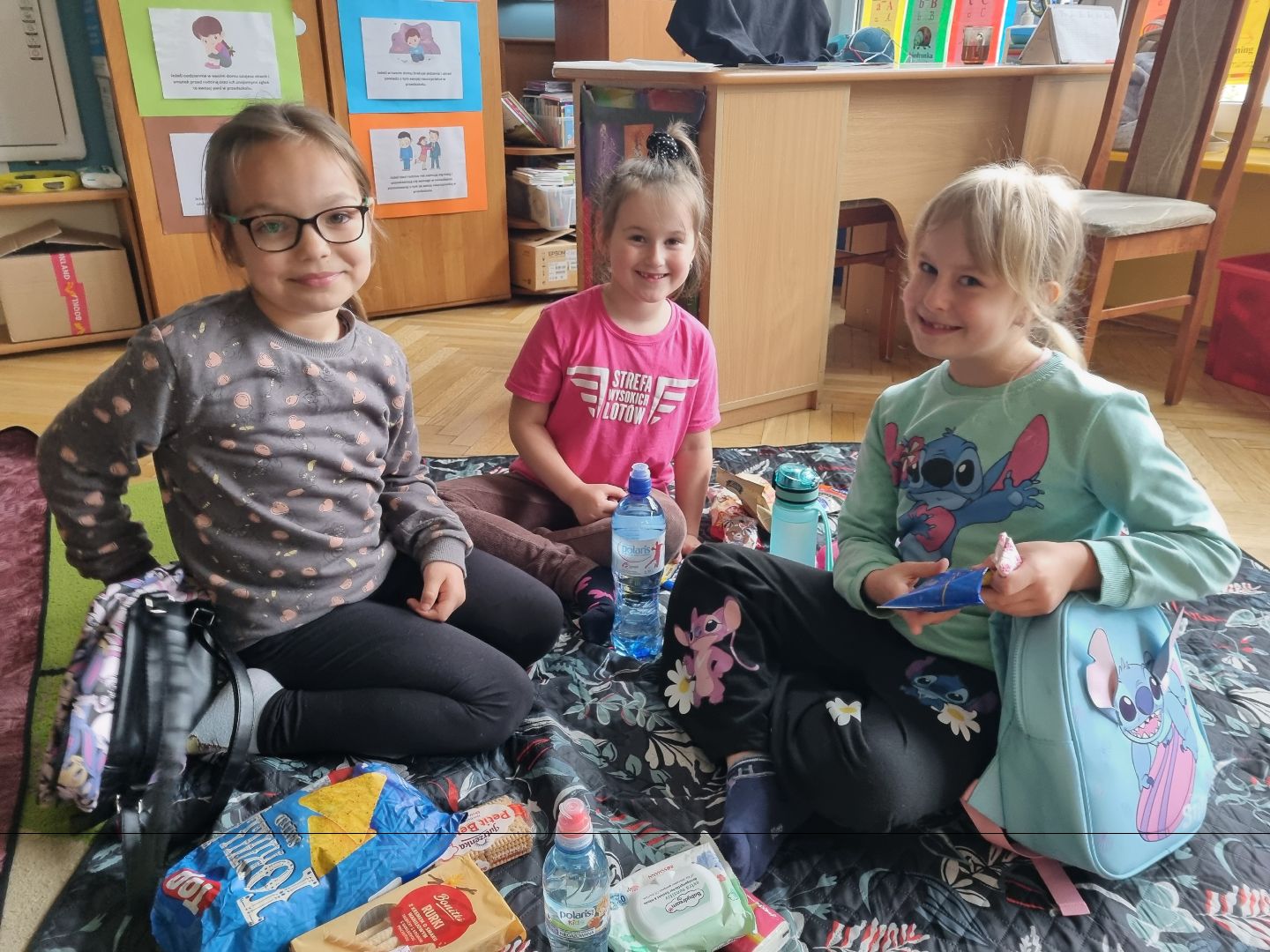 Dzisiaj Pszczółki przyszły do przedszkola z kocykami i plecakami pełnymi rozmaitych przekąsek, w pełni gotowe na pikinik pod chmurką. Niestety, tegoroczny czerwiec nie rozpieszcza nas piękną pogodą i musieliśmy nasz piknik.... zorganizować w sali! Dzieci rozłożyły swoje koce na dywanie i zajadały się smakołykami przygotowanymi przez Rodziców. "Pszczółki" z ochotą dzieliły się swoimi przekąsakmi, częstując się wzajemnie. Piknik, pomimo, iż w budynku, był naprawdę bardzo udany! Dziękujemy Rodzicom za przygotowanie plecaczków i kocyków!