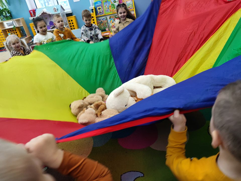 Dzieci miały okazje pokazać swoją ukochaną maskotkę dla sowich przyjaciół z przedszkola, wraz innymi radośnie tańczyć i brać udział w zabawach z chustą. Mieliśmy okazje stworzyć własną bransoletkę przyjaźni z pluszowym misiem oraz skosztować własnoręcznie zrobionych słodkich misiowych kanapek.