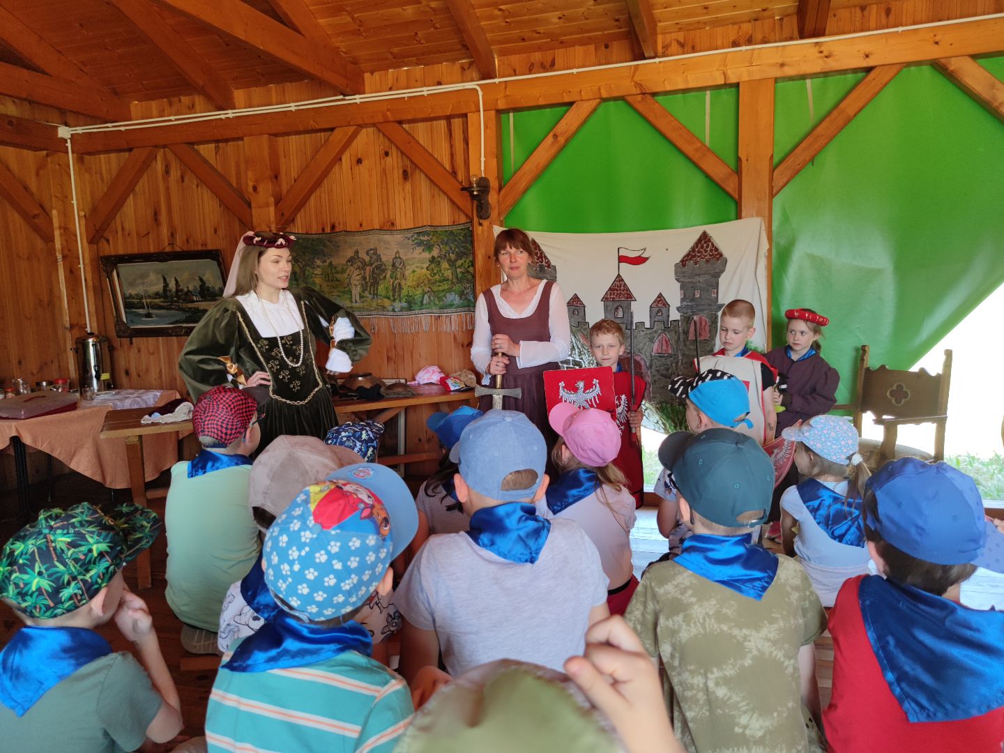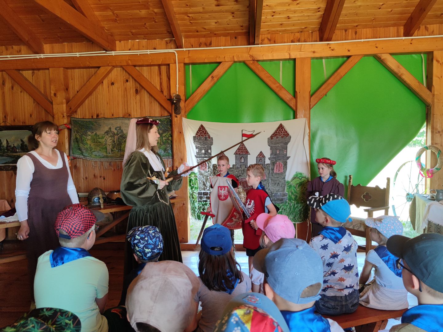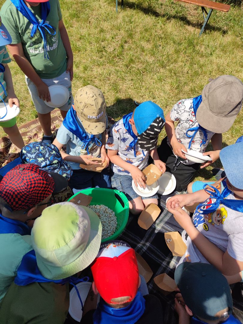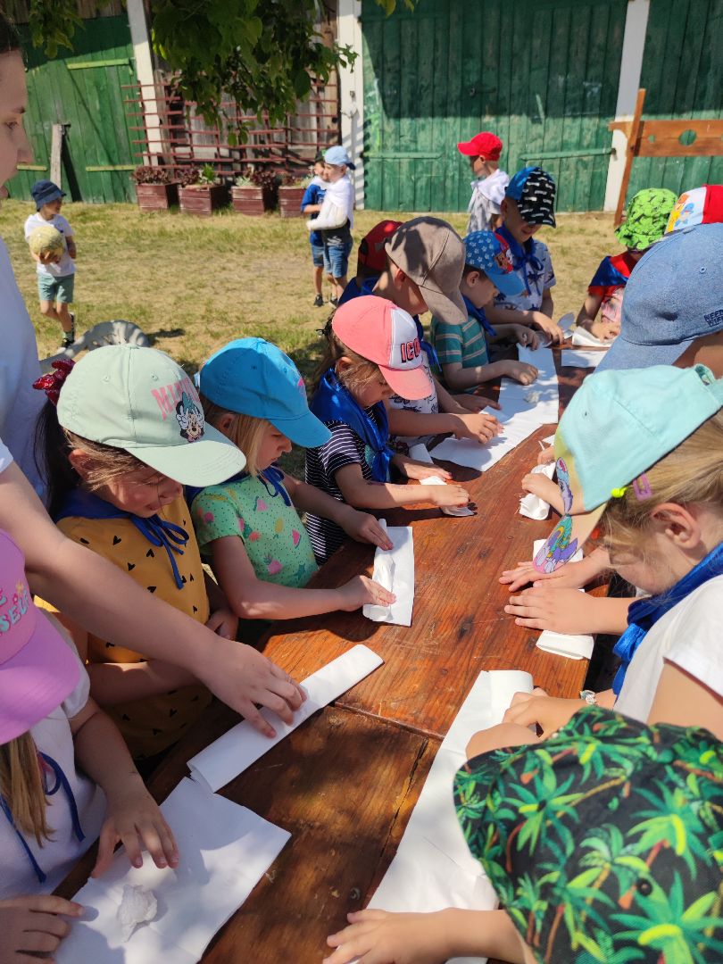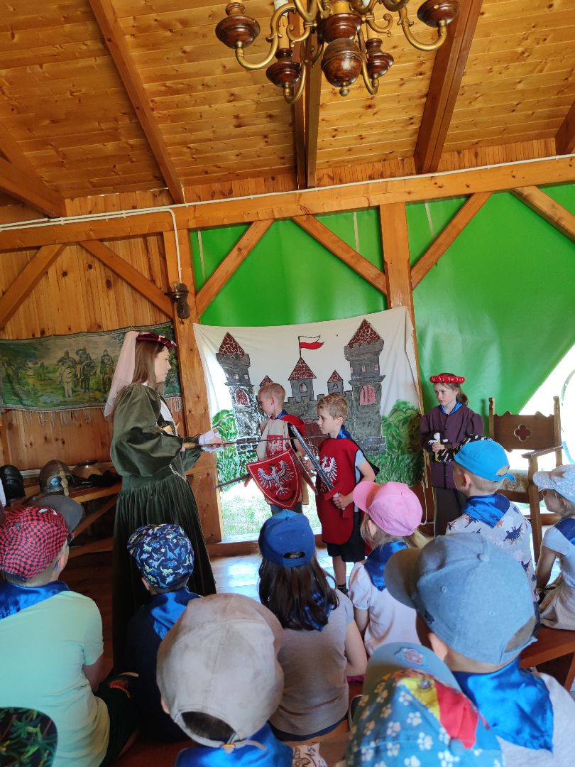 Dzieci miały okazje zapoznać się ze starymi obyczajami szlacheckimi oraz doświadczyć przykładów pracy z danych lat (pranie na tarze, prasowanie starym żelazkiem). Mieliśmy okazje wypiekać własne podpłomyki oraz zwiedzić znajdujące się na terenie wioski muzeum.
